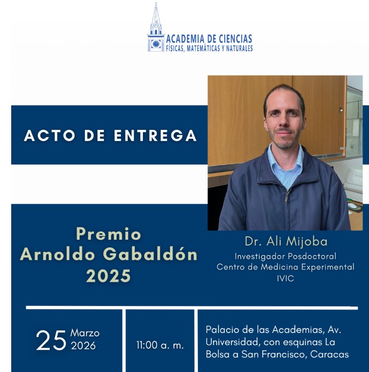 La Academia de Ciencias Físicas, Matemáticas y Naturales de Venezuela (ACFIMAN) dio a conocer al ganador del Premio Dr. Arnoldo Gabaldón en su edición 2025. Se trata del doctor Ali Mijoba, investigador asociado del Centro de Medicina Experimental del Instituto Venezolano de Investigaciones Científicas (IVIC).