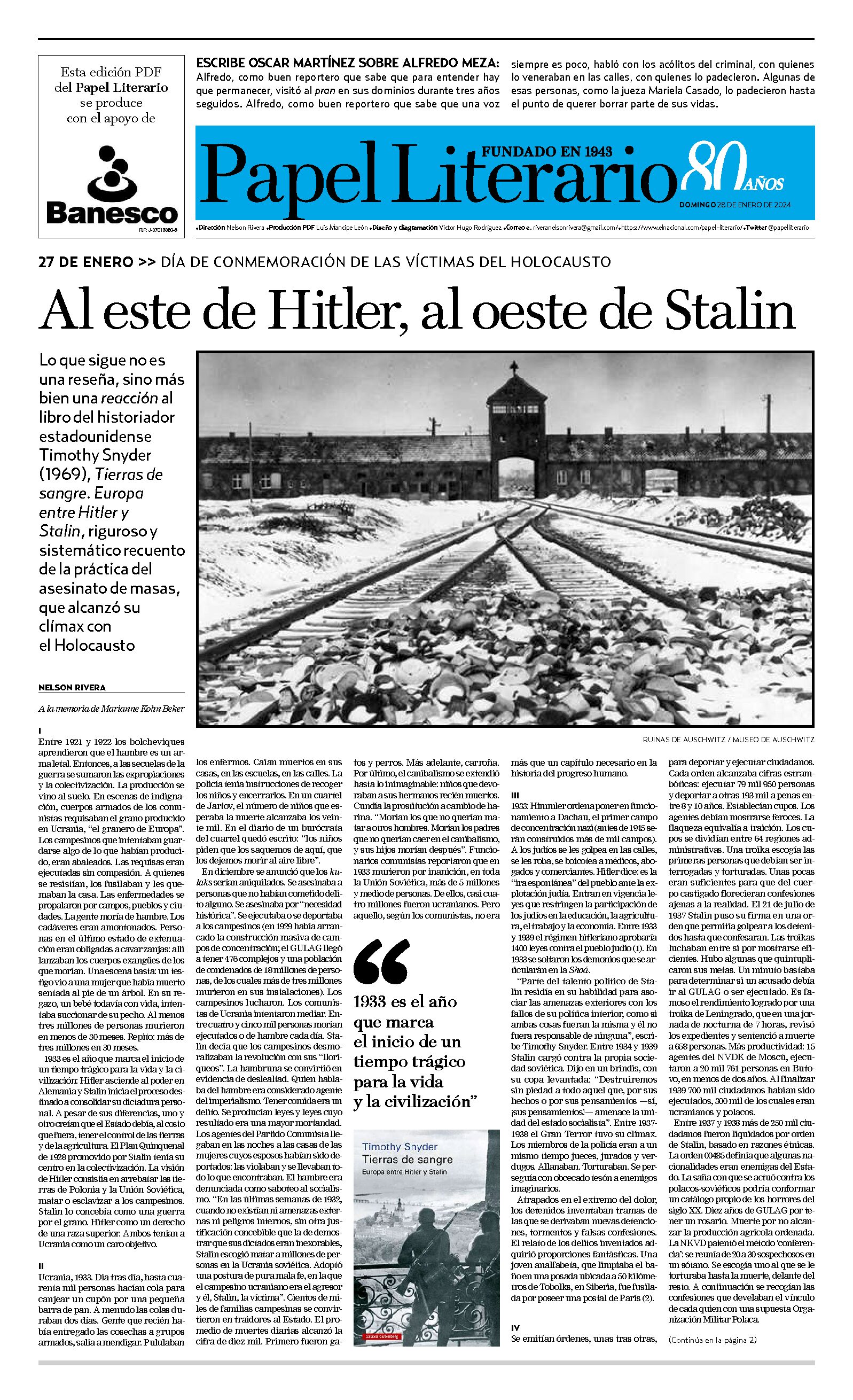 Día de Conmemoración de las Víctimas del Holocausto en el Papel Literario