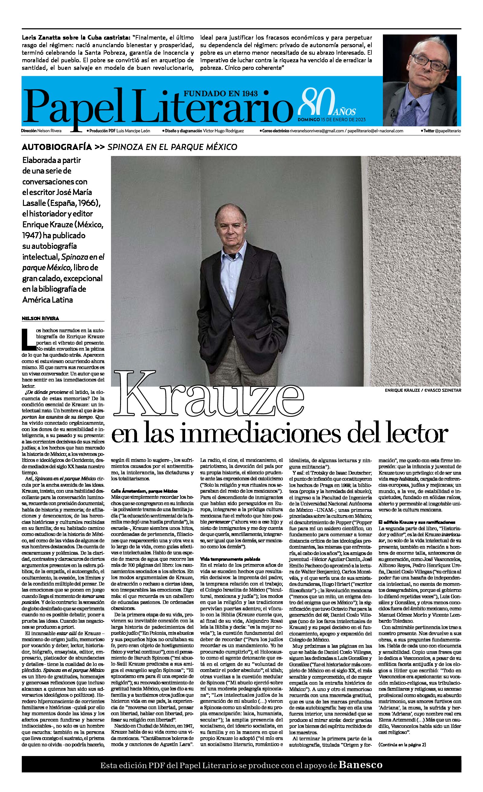 Enrique Krauze en las inmediaciones del lector, en el Papel Literario