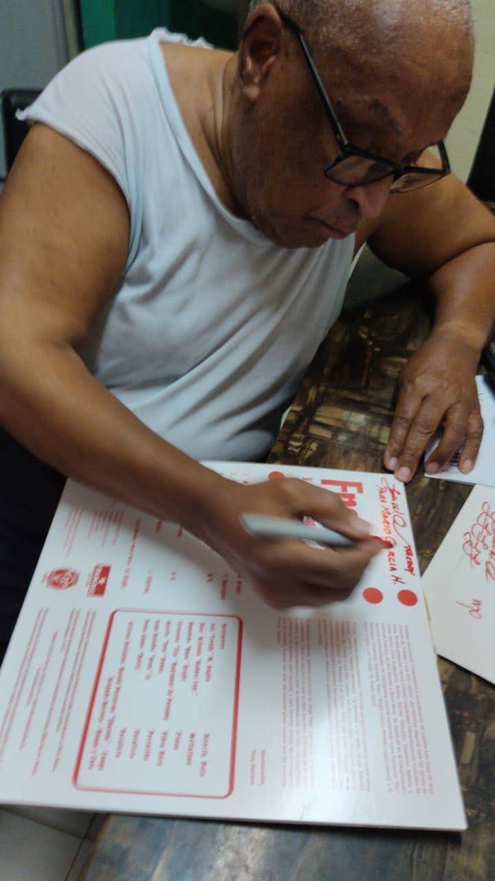 Freddy dedicando su álbum a Mario García Hudson