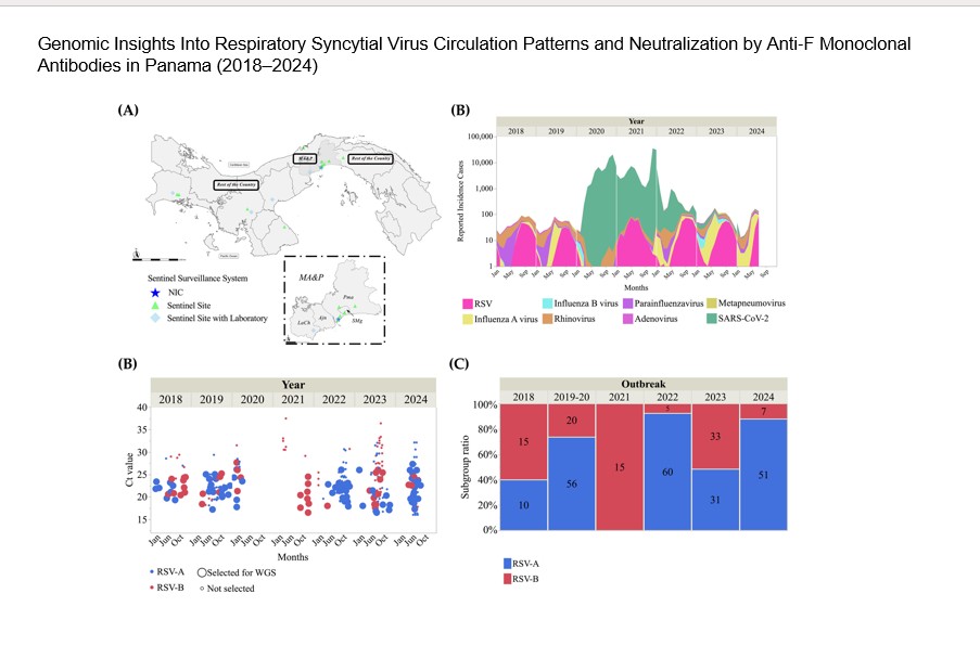 Este trabajo fue apoyado por la Secretaría Nacional de Ciencia, Tecnología e Innovación (Senacyt) y el Instituto de Salud Carlos III. Se publicó en Wiley el 22 de octubre de 2025, bajo el título traducido, Perspectivas genómicas sobre los patrones de circulación del virus respiratorio sincitial y su neutralización mediante anticuerpos monoclonales anti-F en Panamá (2018-2024).