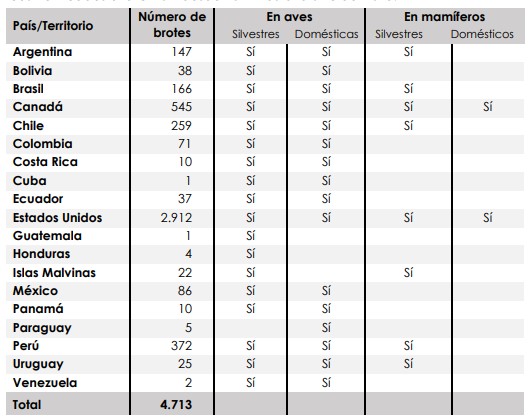 Tabla influenza aviar