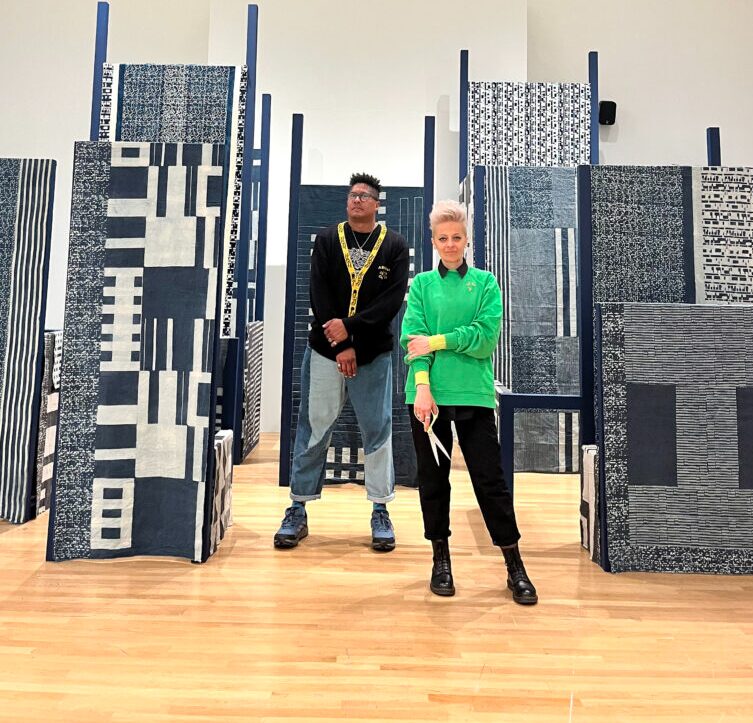 Antonio José Guzmán e Iva Jankovic desarrollan una práctica que combina textil, sonido, archivo y memoria para abordar historias de movimiento, identidad y diáspora. Su investigación incorpora colaboraciones artesanales con el taller de Sufiyan Khatri en Gujarat (India) y referencias visuales afrocaribeñas, Adinkra y mesoamericanas.