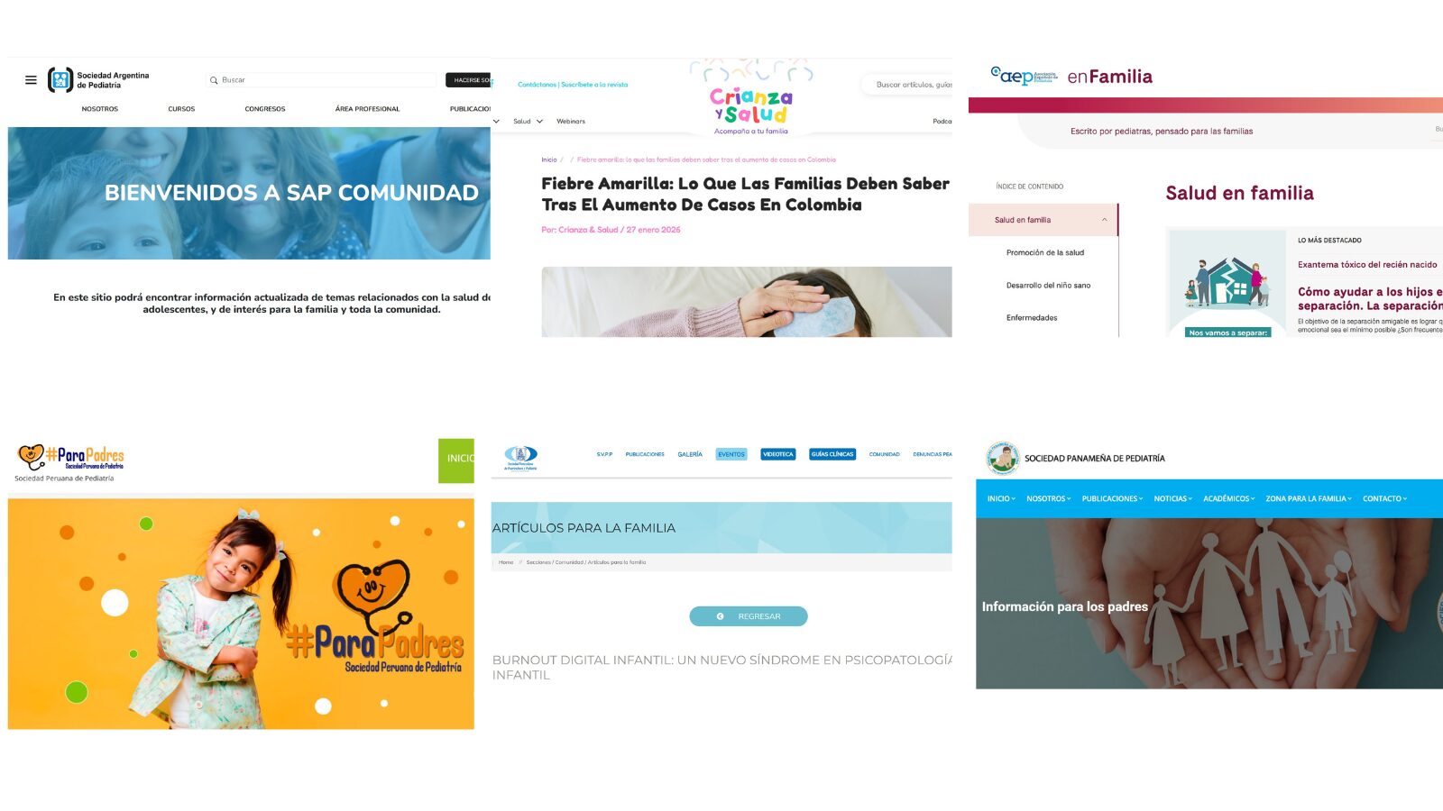 La Sociedad Colombiana de Pediatría ha creado en su portal la sección Crianza y salud (acompaña a tu familia), “sitio dirigido a las familias y al público general. Todos los contenidos son elaborados y revisados por especialistas para brindar acompañamiento, orientación e información pertinente”.