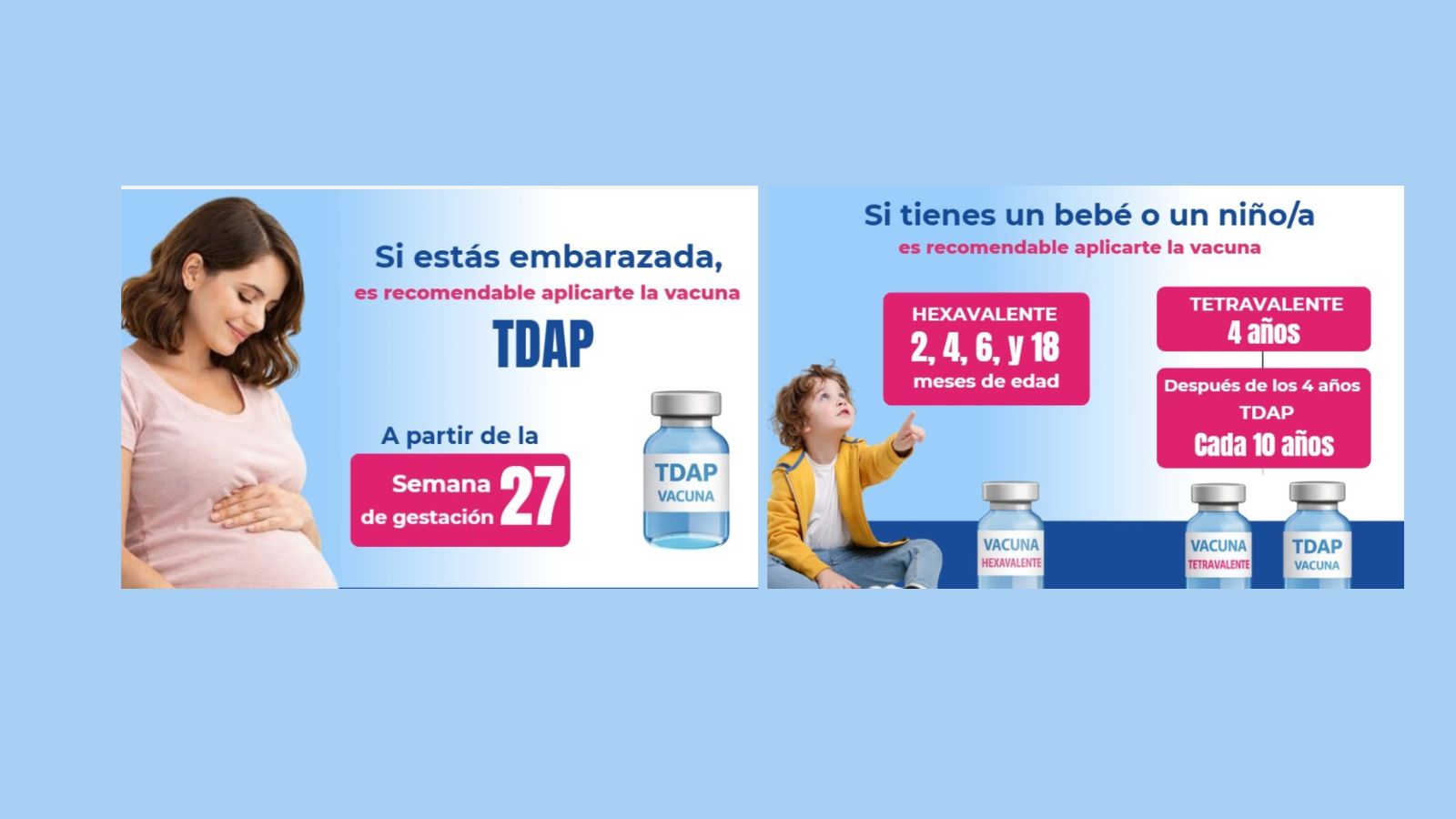 Aplicarse la vacuna Tdap a partir de las 27 semanas de gestación permite que la madre transfiera anticuerpos al bebé antes de nacer, brindándole protección durante sus primeros meses de vida, cuando aún es más vulnerable.